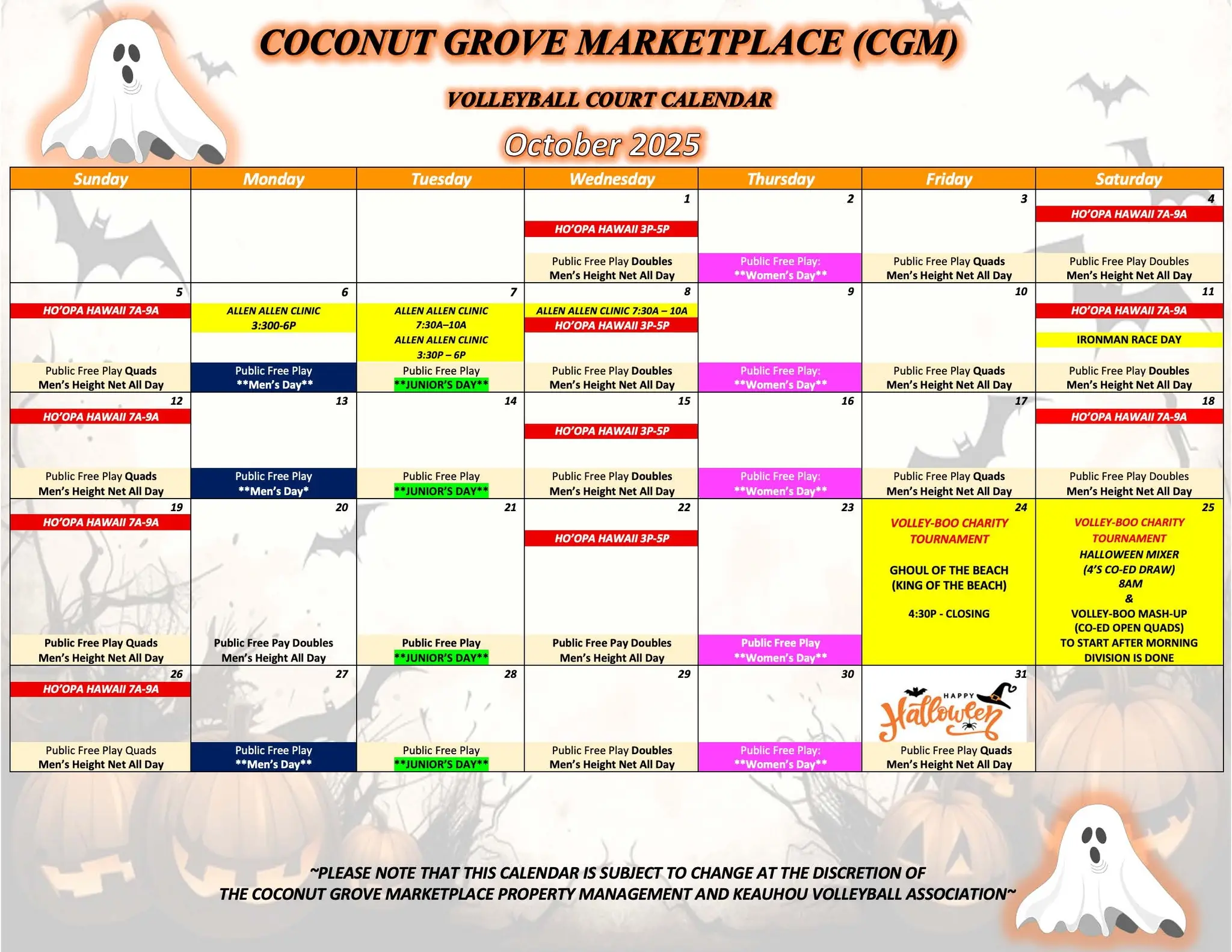 October Volleyball Schedule